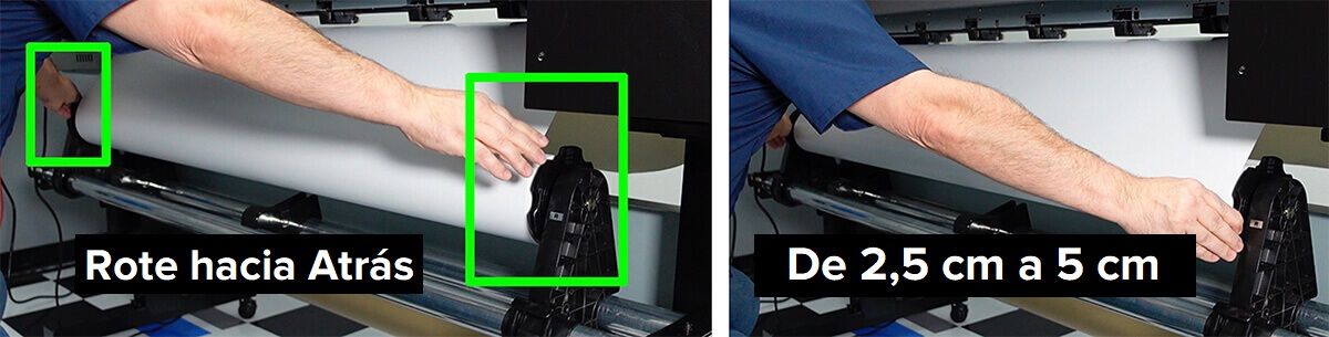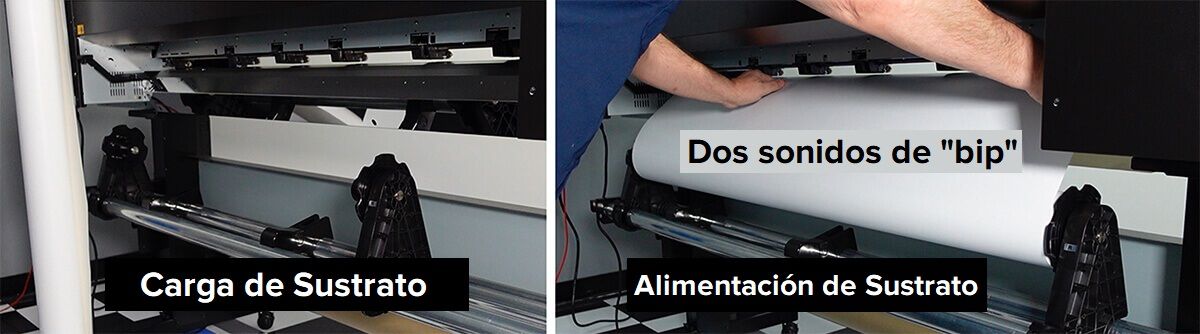 Al alimentar su rollo de sustrato desde la parte trasera de su impresora, usted oirá un “bip”, y al seguir alimentándolo usted oirá un segundo “bip”. En ese momento, el sistema de aspirado se activará para sujetar el sustrato.