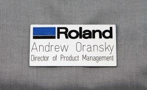 Ahora que paso algo de tiempo en la oficina después de nuestros recientes shows, limpié el bolso de mi laptop y la identificación que había estado usando en todos aquellos se encuentra aquí sobre mi escritorio, lo cual me hizo pensar sobre los grabadores Roland DG.