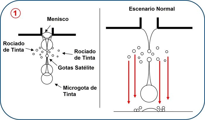 Cuando aparece la electricidad estática, ésta atrae las gotas satélite más pequeñas de vapor de tinta, desviándolas del patrón normal de caída. Estas gotas pueden adherirse al cabezal de impresión, eventualmente obstruyendo las boquillas y causando dispersión. Dichas gotas también pueden dispersarse cuando son atraídas a ubicaciones de estática en el sustrato, causando borrosidad en las impresiones. Adicionalmente, la estática puede causar marcas de rodillos de arrastre y hasta dañar componentes, incluyendo sensores laterales, codificadores lineales y partes de cabezal de impresión.