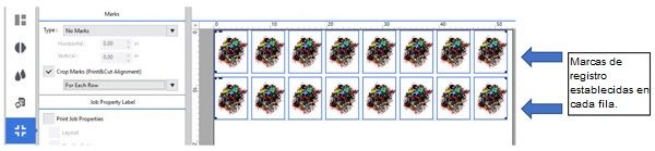Si usted determina que la complejidad de su imagen requiere un registro de impresión y corte muy preciso, puede seleccionar “Crop Marks for Each Data Entry” (“marcas de corte para cada ingreso de datos”).