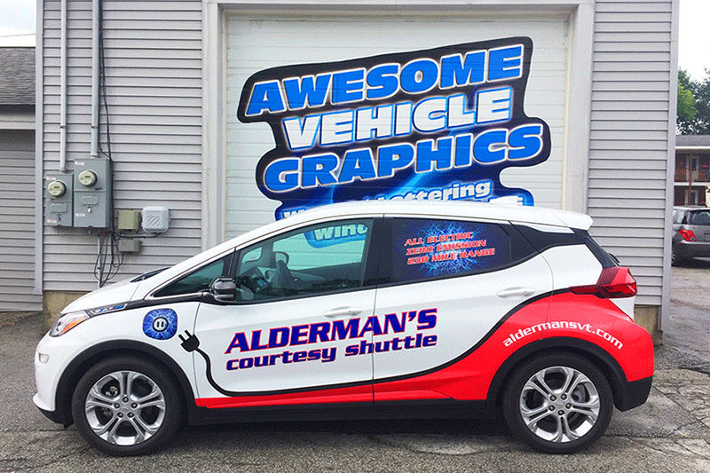Gráficos patrióticos deportivos para camioneta azul creados por East Coast Sign & Design con su impresora/cortadora digital TrueVIS™ de Roland DG. Diseñando para el Futuro