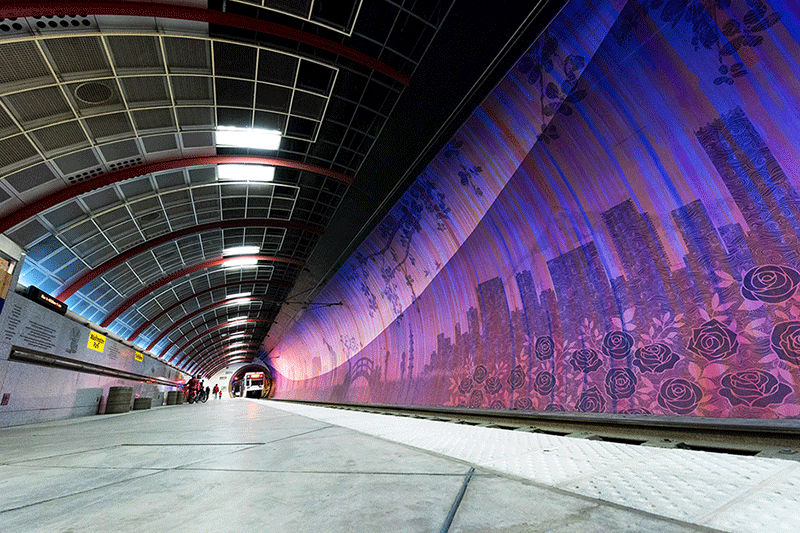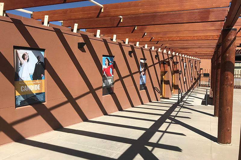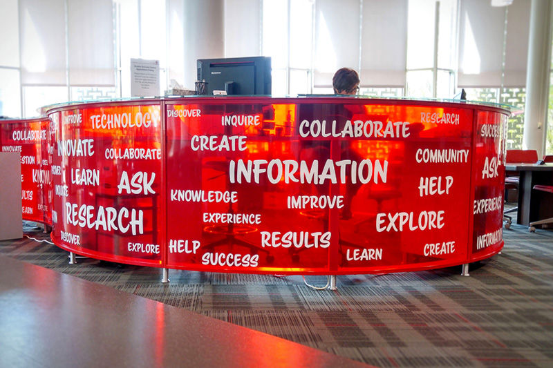 Los vibrantes gráficos de ventanas impresos con la impresora/cortadora TrueVIS™ VG2 de Roland DG de Full Point Graphics cubren dos lados de un edificio. Exhibiendo Calidad