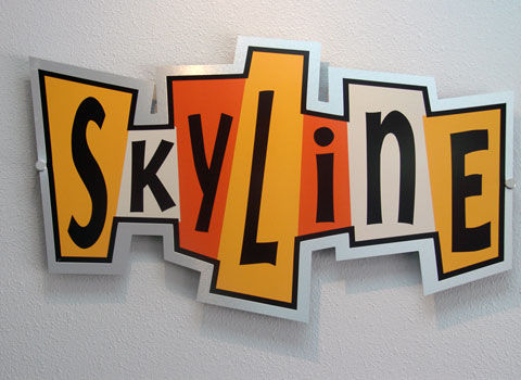 Thomas informa que su taller también se está diversificando hacia los avisos para interiores y exteriores para restaurantes, con resultados magníficos. Al variar el aviso típico para restaurantes, Virtuoso diseña una forma troquelada en metal para el fondo, la cual subcontratan. Thomas luego aplica los gráficos a cuatro colores en la pieza troquelada. Ellos la terminan montando el aviso a una pulgada de la pared. “Los avisos parecen flotar en la pared. A mis clientes y a los clientes de ellos les gusta mucho el aspecto,” dijo Thomas.
