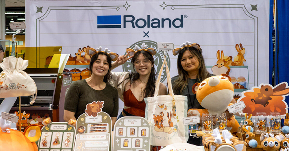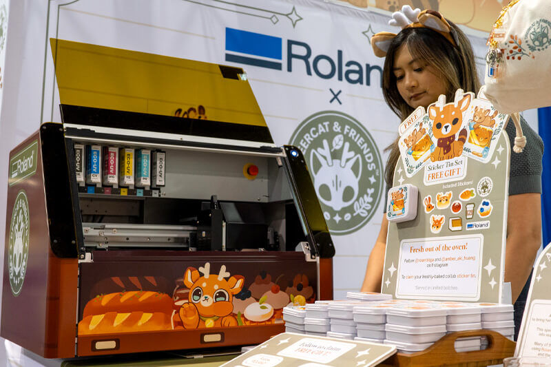Angelyn Cubacub, Gerente de Segmento de Pequeñas Empresas de Roland DGA, recientemente llevó de gira a la línea VersaSTUDIO®, asistiendo a la feria Wondercon en Anaheim, California, Estados Unidos. Para Wondercon, Roland DGA se asoció con la artista Amber Aki Huang de DeerCat & Friends para hacer que sus adorables personajes cobren vida con las impresoras Roland DG.