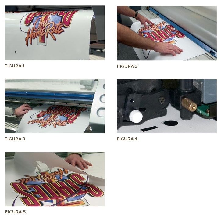 - Vuelva a cargar el gráfico laminado a la impresora/cortadora (Figura 3). Alinee las marcas de registro ópticas con Quadralign™ (Figura 4).
