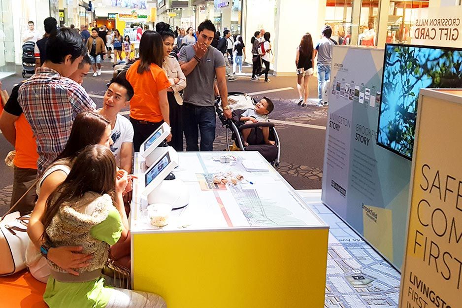 Para su cliente Brookfield Residential, Westwind diseñó un puesto de 3 m x 4,5 m con letreros, pantallas digitales y una aplicación digital personalizada. Usaron su VG-540 para imprimir un juego completo de gráficos de pisos y paredes. “Tratamos de crear un espacio inclusivo, divertido y atractivo”, dice Pearse. “Logramos el objetivo de tráfico de tres meses de nuestro cliente para el proyecto en solo tres semanas, y estuvo extremadamente feliz”.