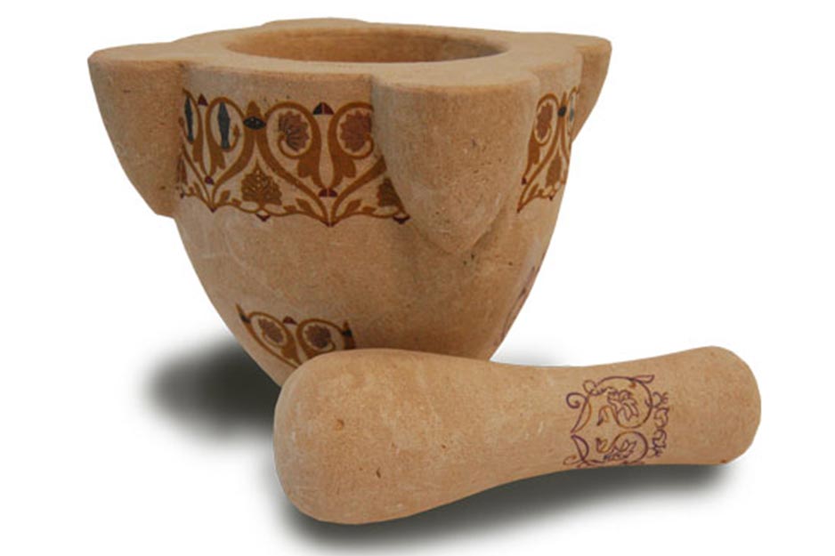 El procedimiento de aplicación de gráficos en la toba empieza con el tratamiento del material de superficie mientras la impresión es creada. Después de casi doce horas, la impresión, creada en imagen especular, es aplicada al material. Cuando la impresión se seca por completo, el recubrimiento es retirado y los gráficos son perfectamente moldeados a la superficie del objeto.