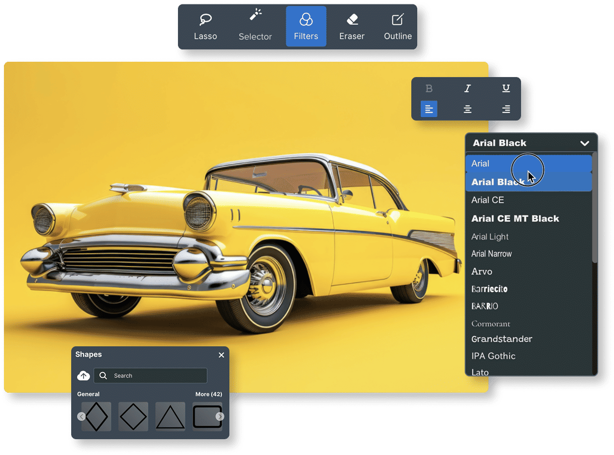 Agregue elementos, ingrese textos o retire fondos con un solo “clic”.