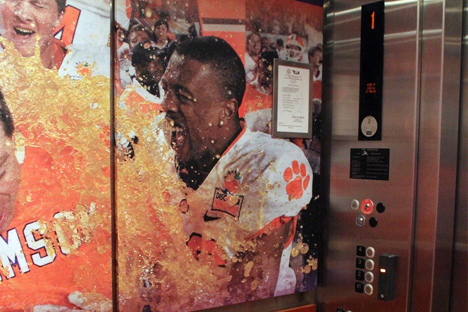 “Todos colaboraron y el resultado final fue muy bueno”, dice Taylor. “El Gimnasio Jervey es un lugar muy popular y a la vez un centro de exhibiciones de la universidad, y era importante que este trabajo sea un éxito. Nuestro equipo Roland DG nos ayudó a entregar excelentes resultados”.