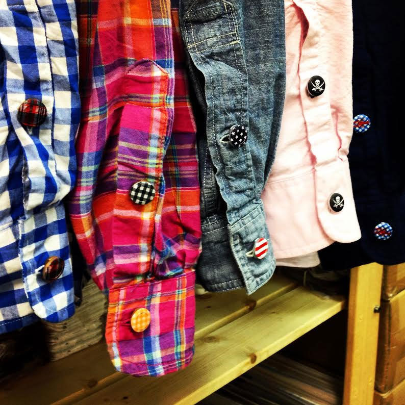 Las cubiertas personalizadas de botones de Altr vienen en conjuntos de cuatro unidades grandes o seis pequeñas. Los clientes corporativos de Altr solicitan logotipos para ser usados como cubiertas de botones o insignias de solapa. Alex dice: “nuestra selección es prácticamente ilimitada. Si veo un patrón o diseño que me gusta, usamos nuestra plantilla y hacemos clic en el botón ‘Imprimir’”.