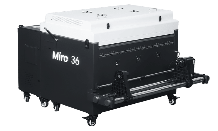 The compact, modular Miro 36 pairs up perfectly with the TY-300 to form a seamless, efficient DTF printing system that consumes less power than comparable shakers. It also boasts a touch screen control panel for ease of use and a built-in air purification system for optimum workplace safety.